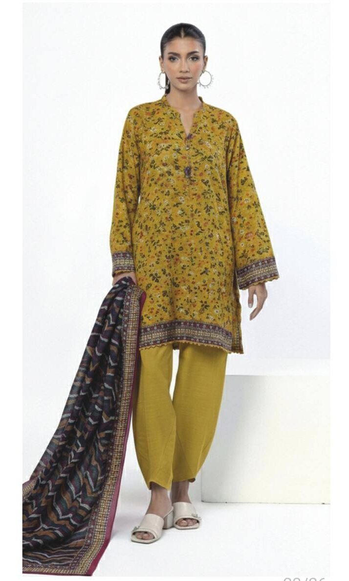 Bring color and comfort together with this beautifully designed 3-piece unstitched lawn suit. The outfit includes a 3 meter digital printed lawn shirt, a 2.5 meter matching digital printed lawn dupatta, and a solid dyed cambric trouser to complete the look.